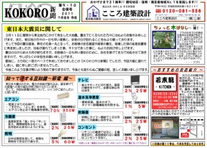 2011.07.12 KOKORO新聞9・10合併号 完成!! たいへん長らくお待たせ致しましたm(__)m 3ヶ月に1度のペースでお配りしていました『KOKORO新聞』がようやく完成致しました!! 3月にお配りする予定でした第9号と、6月にお配りする予定でした第10号を編集し直して、合併号という形で両面印刷で作成致しました。 文章力や知識もあまりない自分ですが、一生懸命に作りましたので、どうぞ皆さんお楽しみにお待ち下さい♪♪