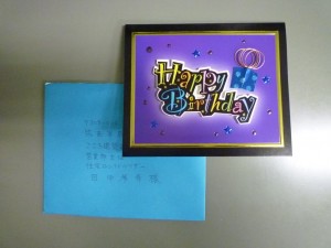 ここの所、震災の復旧の事や業務の事で自分を見つめ直す機会がありませんでしたが、そんな中、頂いたこのバースデーカードには、自分自身がお客様に与えている印象と、これからの在り方を教えて頂いたような気がします。