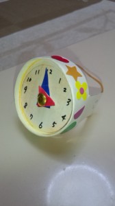 まだ時間を読めないのに・・・・時計を腕にはめました