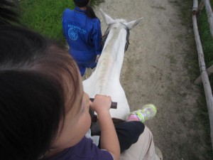お決まりの南ヶ丘牧場に行ってニジマスに餌をあげて馬に乗って楽しみ