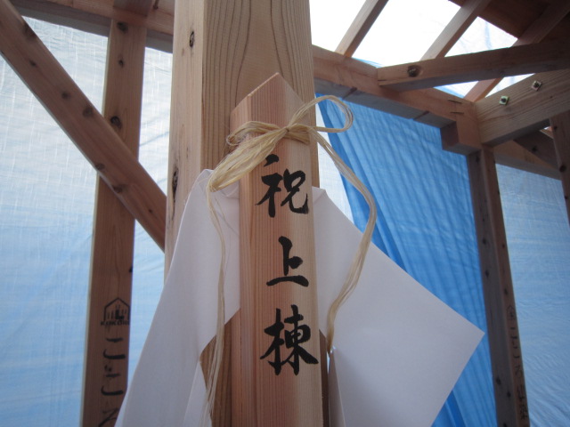 こころのブログ 2012.11.19 桜川市真壁町椎尾 T 様邸 上棟しました(^-^) 11月18日(日) 桜川市で施工させて頂いているT様邸 無事に上棟致しました。 T様 本当におめでとうございました。(^-^) 出来るだけ早く瓦を葺いて雨の心配を無くすように 鈴木が頑張ってくれています。(^-^) 土地探しから始まった念願のマイホーム造り 奥様・ご子息様たちがお父さんの頑張りをきっと見ててくれています。(^-^) 私達もご期待に応えられるように心を込めた仕事をさせて頂きます。 引き続き宜しく御願い致します。