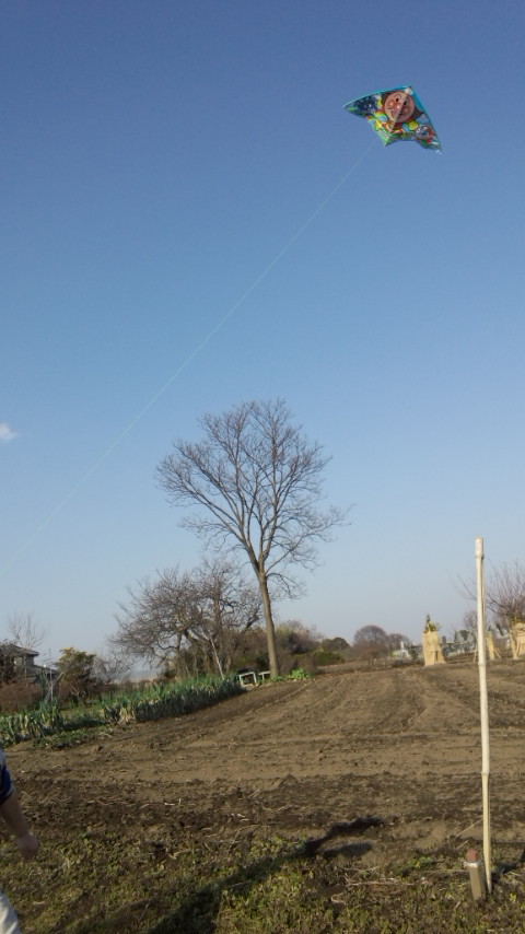 こころのブログ 2013.01.08 凧あげ 今年に入って穏やかな日が続いております。 もーいくつ寝ると~お正月~♪の歌の通り 子供たちと凧揚げをおこないました。 数年前に500円で購入した某テレビ番組の あんぱん〇んの凧は 今年も元気に大空を飛びました。 勉強は教えられないので(++) 外で遊ぶ事の楽しさを子供たちにびっちり教えてあげようと思います。