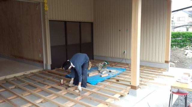 まずは物を運べるように納屋に床を上げて畳が敷けるように致しました。