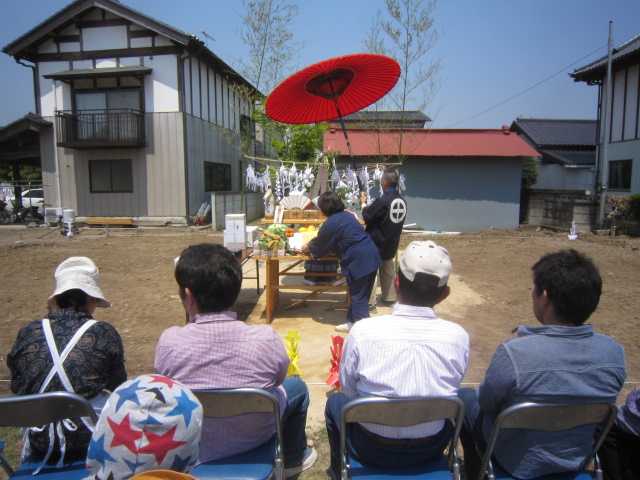 現場探訪記 2013.05.06 5月6日 N 様邸 地鎮祭 五月六日 暦の上でも非常に良い日とされる本日 朝から 市内のN 様邸で 地鎮祭を行いました。 地鎮祭の順序や方法も様々で・・・今回は 市内のお寺から 来て頂いたとの事です。 朝から素晴らしい天気 時折吹く風が心地よい最高でした。 N 様 地盤も強くて 良かったです(^-^) 明日から 工事の方入らせて頂きますm(__)m 宜しくお願い致します。