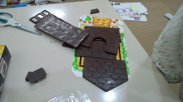 基礎に温めたチョコを塗り付け 壁を立ち上げます
