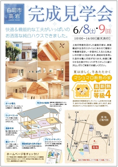 現場見学会 2013.06.07 6月8日と9日 埼玉県白岡完成見学会開催します。 今回のお住まいは全室 漆喰仕上げの自然素材にこだわった内容になっています(^-^) リビングに入った瞬間にびっくりする内容が2つあります(^-^) 期待を持ってご来場下さいませ(^-^)
