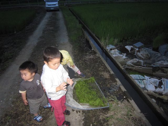 急いで 子供たちに『行くぞ~』と車に乗せ 急いで用水路近くの小川に到着