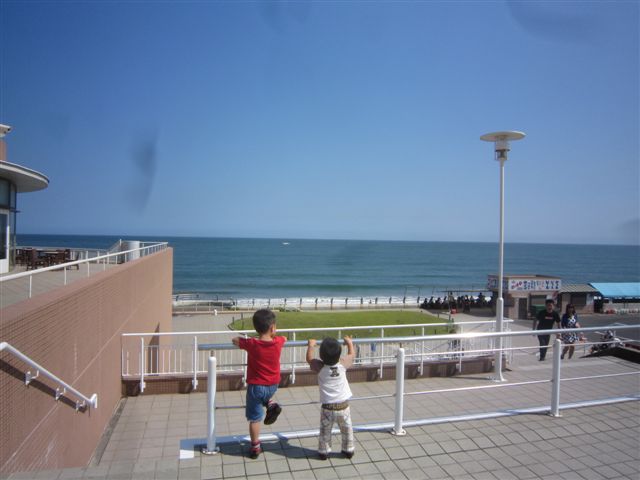 大洗に到着 海辺の道を走ると子供たちは大喜び