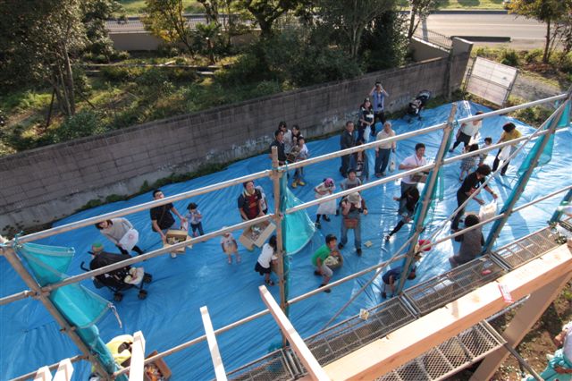 下ではY様の友人たちのお子様たちが今か今かと もちを拾うのを楽しみに