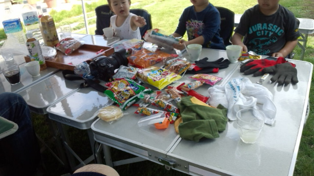 芋ほりを終えた後はおやつタイム・・・・そして なぜか 相撲大会