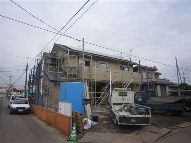 現場探訪記 2013.10.19 もうすぐ 足場が外れます(市内 二木成 A様邸) 外壁工事がもうすぐ終わりそうなA様邸 足場の解体の前に細かい部分をチェックします。 内部の工事も2Fはほぼ出来上がりました。 階段周りを仕上て1階に下りてきました(^-^) 外壁の色も良い感じです。