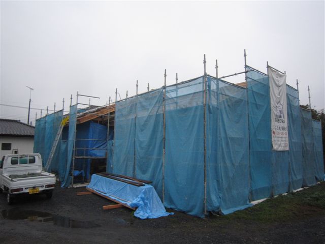 現場探訪記 2013.10.25 防蟻工事完了(^-^)真岡市Y様邸(平屋) 先日、上棟を終えたY様邸 現場もスムーズに進み 防蟻工事が完了しました!! 瓦ももう半分は終わっていて・・・何だか形になってきました(^-^) O棟梁も何だか気合が入っている感じ(^-^) 細かい打ち合わせをして帰ってきました。 来週には捨て貼りを貼ってサッシも納入されますので 家らしい内容に変化していきます。 Y様 お嬢様と一緒に現場前を通るのが日課だとか(^-^) 台風は何だか少しそれてきました 少しほっとしています。