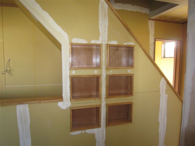 現場探訪記 2013.11.18 仕上工事に入ってきました(^-^) 筑西市 二木成で施工で施工させて頂いております A様邸 仕上工事に入っております。 本日はキッチンの取り付け工事中 カップボードが取り付きました。 壁紙の下地処理中の二階 仕上がりが楽しみです。