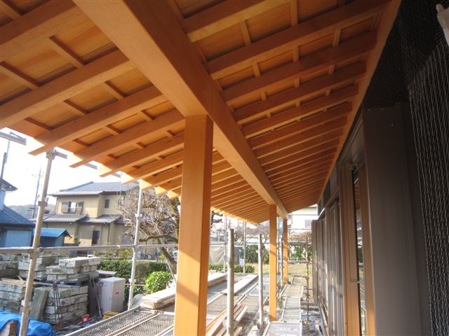 外部の下屋が終り 塗り壁の下地を塗り始めました。