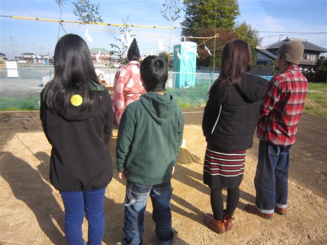 現場探訪記 2013.11.24 祝 地鎮祭 O様邸 筑西市野殿 晴天の日曜日 市内でO様邸の地鎮祭を行いました。 何だか・・・家ってこんなに狭いんですか?・・・と 不安がる奥様(^-^) みんな お客様は そう言うんですよ~と地縄を見て これからの予定などをお話しさせて頂きました。 さあ いよいよ 白い塗り壁の洋風な住まい造りが始まります(^-^) 楽しみです。