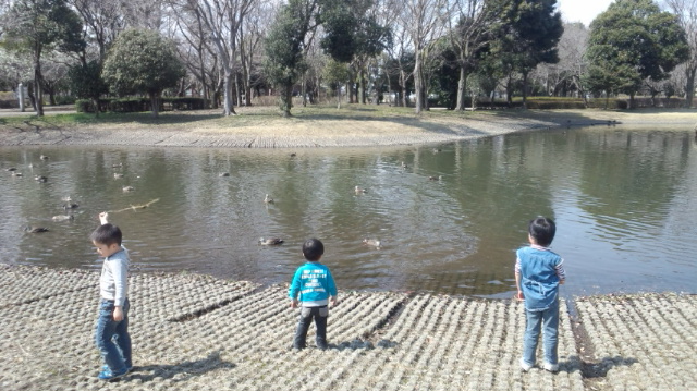 その後 県西公園へ車で移動 アスレチックで遊び 公園の池にいるカモや鯉を見学 帰りに