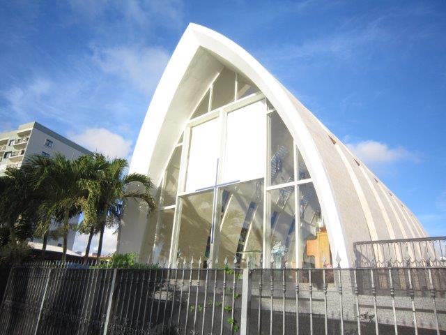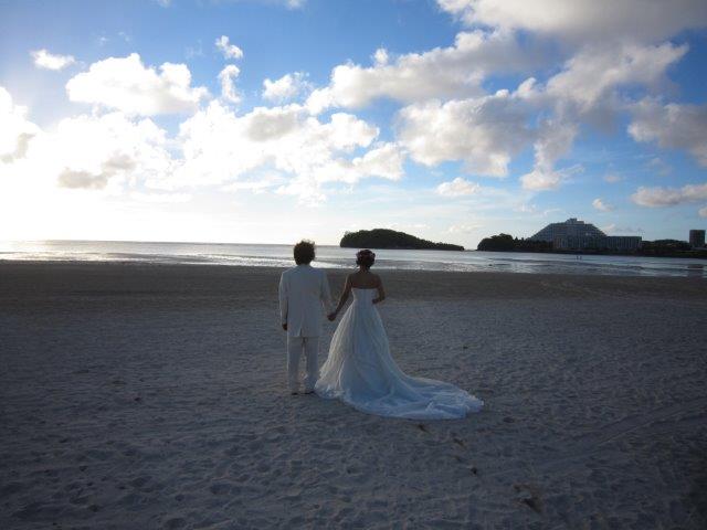 奇麗な海辺に建つ教会で身内と親しい友人達と一緒に