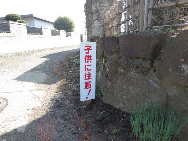 こころのブログ 2015.04.08 子供注意 実家の父が 前々から言っていた 看板 言われた私が動かなかったので段取りして取り付けてくれました(@@) 杭を打ち込む作業だけは手伝いました(;;) ちょろちょろしている息子達・・・ 車が勢い良く通り抜けると ゾッとします オヤジ!! ありがとう