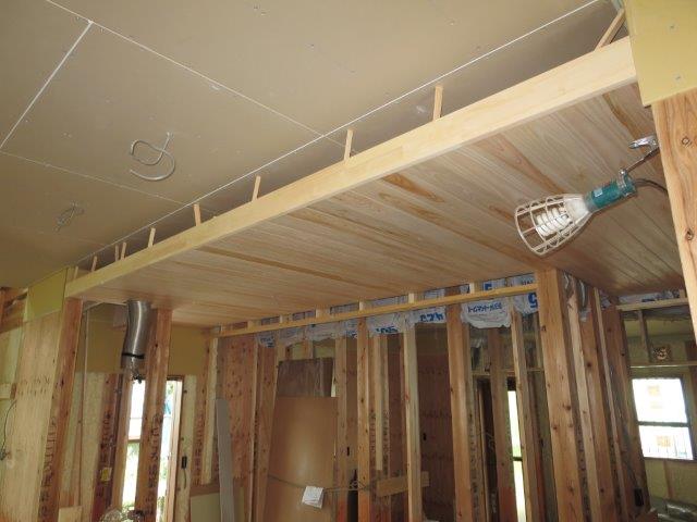 内部も化粧の無垢の羽目板の施工が終わっていました