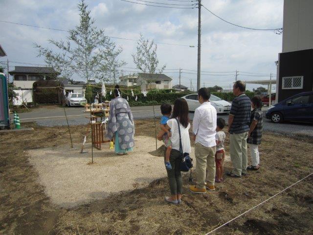 現場探訪記 2015.09.05 祝 地鎮祭 筑西市 M様邸 天気予報でも今日しか晴天はありません!!と言うピンポイントな貴重な週末に 住まいづくりの初日を迎えられたM様邸 丁度良い気温の中 地鎮祭を行う運びになりました お子様達もきちんと終わるまでおりこうさんでいられました(^-^) 鍬入れの儀の時に 元気にエイッと言えました 小学校に入学に合わせて・・・とご計画していたM様 いよいよ 工事が始まります(^-^) 安全第一でしっかり造らせて頂きますので引き続き宜しくお願い致します