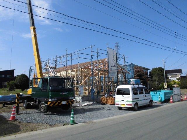 現場探訪記 2015.10.09 K様邸 上棟 筑西市吉田 本日の朝から骨組みを組み上げているK様邸 スムーズに進み屋根の下地とルーフィングまで進んでいます 明日の上棟餅まき・・・・天気も何とか大丈夫そうです 平屋建てのK様邸 完成までN棟梁!!宜しくお願い致します