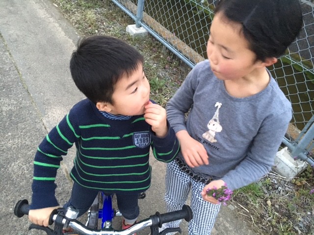 こころのブログ 2016.03.22 散歩 暖かくなったので うちのシバられ犬のソラと散歩に行ってきました 途中 自分も子供の頃に舐めた赤い花(品種不明)を 子供達がチューチュー舐めてました そんな事も覚えてるのかと 微笑ましいひと時・・・なつかしいな~