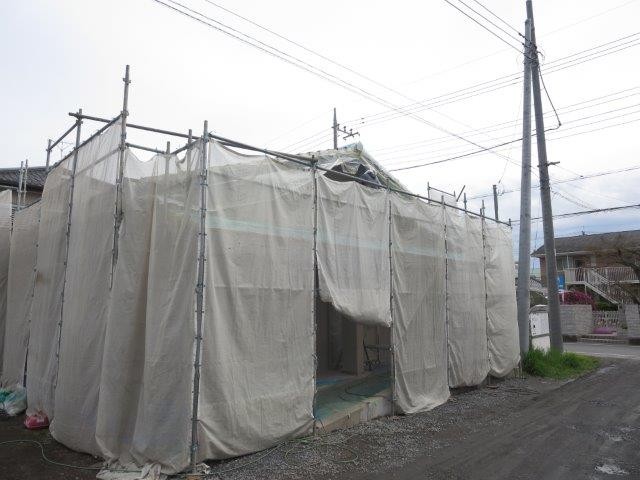 下妻市のT様邸は外部は完了しまして足場の解体待ちです