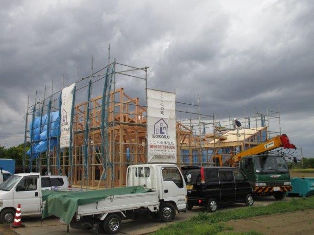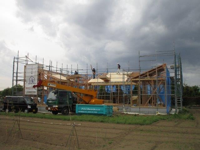 5月22日の上棟式を前に組み上げられたN様邸の平屋建て住宅