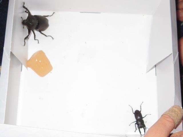 サツマの苗を作っている近所のおじちゃんがカブトムシを持ってきてくれました
