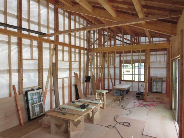 現在 白蟻工事が終わり サッシが搬入されて取り付けている真っ最中です