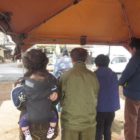 ろうそくを消す作業は孫達にまかせる母