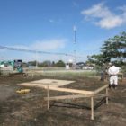 会社の近くのM様邸でシートが外されて外部の野地板が張り始まった状況でしたので