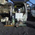 保育園生の息子が兄の帽子をかぶり ランドセルを背負ってポーズをとっています