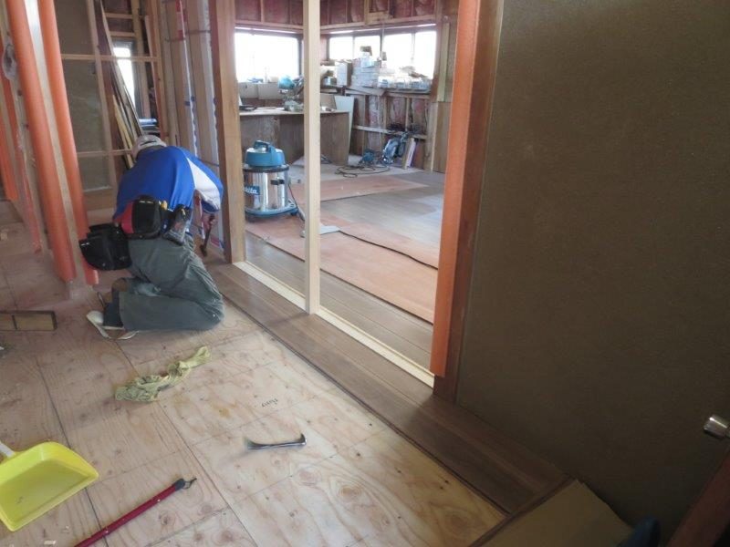 現場探訪記 2019.03.13 内部全面改修のW様邸 筑西市藤ヶ谷 内部を骨組みにしてコツコツと仕上げさせて頂いているW様邸 床材の施工を行わせて頂いております 床がほぼ終わりそうですので 壁の下地に入らせて頂きます 見違えるように変わってきた 改修工事 仕上がりが楽しみです
