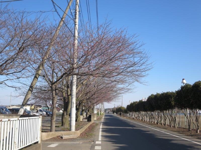 ソメイヨシノはまだですが 1本ごとに植えられている彼岸桜