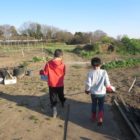 夕方 近くの山にしかける巣を息子達と一輪車で運ぶ作業
