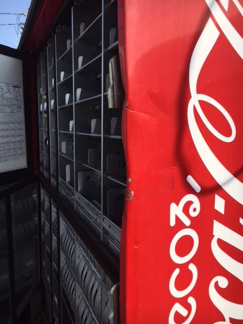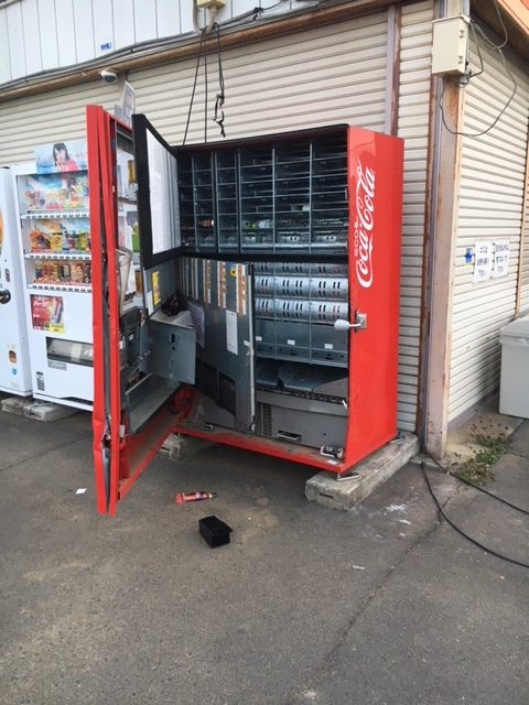 今朝 倉庫前の自動販売機を見ると ドアが開いています