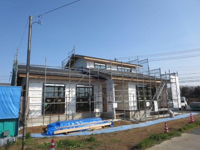 吹き付け工事が終わり 外部も 外壁工事が始まったS様邸
