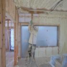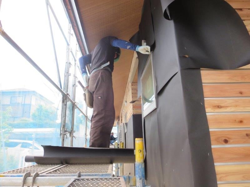朝から左官屋さんの方で外壁の下地を貼り始めています
