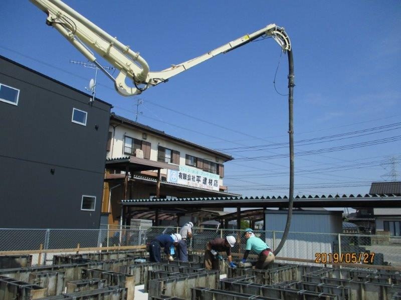 良いコンクリートが型枠に流し込まれて行きます(^-^)