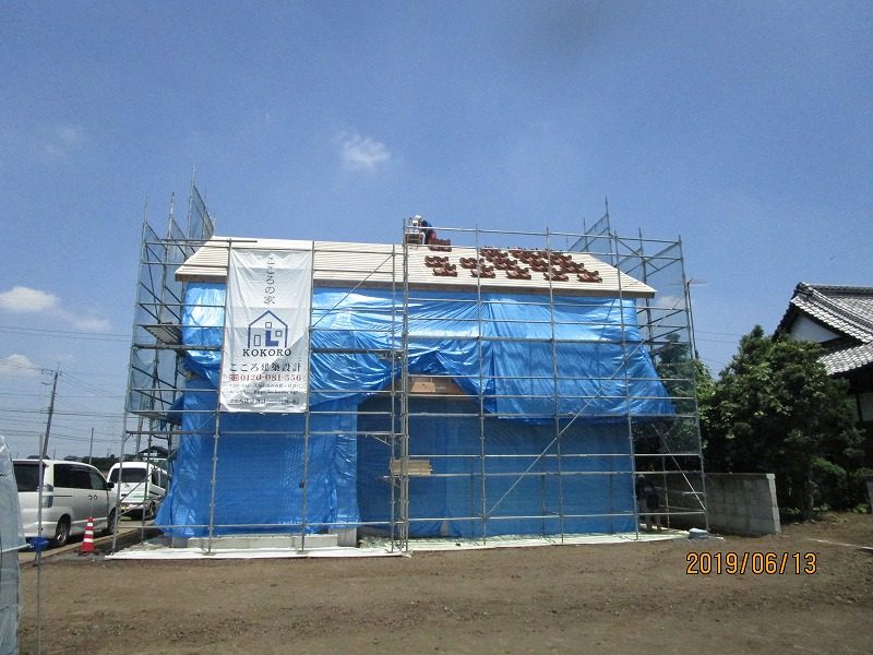 現場探訪記 2019.06.13 JIO躯体検査 筑西市西保末 M様邸 本日 JIO躯体検査を行いました 外部は 瓦も上がり 良い感じです 天気も良いせいか 写りも最高です(^-^) 白蟻工事も終わり いよいよサッシ搬入の時期です 順調に進んでいるM様邸 暑くなる前に 吹き付け断熱に進めそうです♪