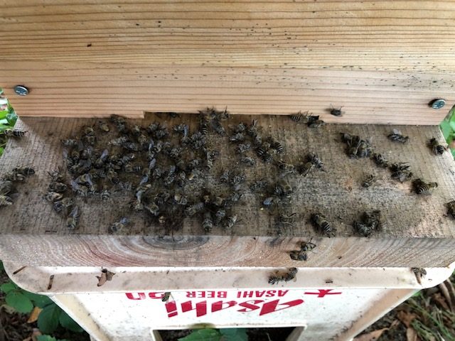 家に帰りミツバチの巣箱を覗いてみると 異変が・・・・ん?