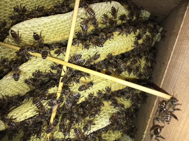 密集していた蜂達が・・・・ 薄白い色い巣が丸見えの状態・・・・・
