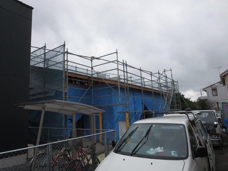 現場探訪記 2019.06.24 雨が降る前に 先日 上棟式を迎えたT様邸住宅新築工事 現場の方 確認に行った際 葺き終えた屋根を 見てきました 良い感じで仕上がっていて 内部は設備屋さん達が配管工事を行ってくれていました 順調に進む現場 現場監督の宮川さん(^-^) バッチリです♪