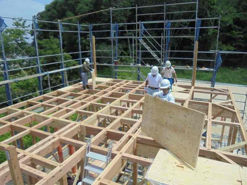 週末の上棟式に向けて早めに建方作業を進めさせて頂いているM様邸住宅新築工事