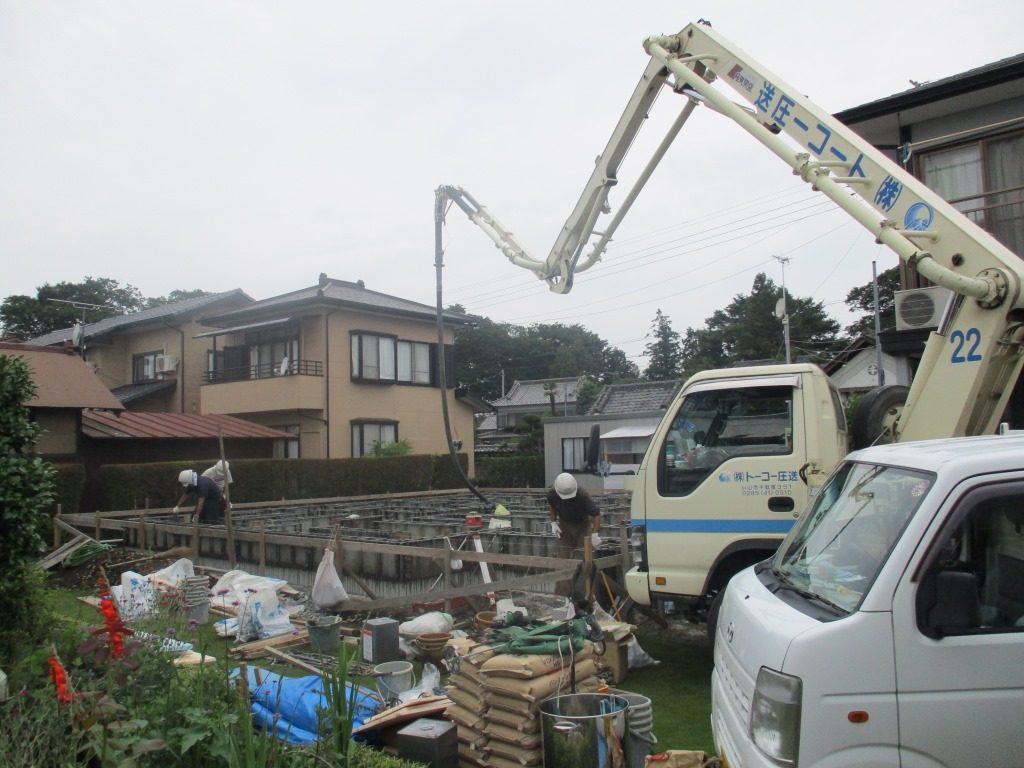 結城市で基礎工事中のI様邸の現場で立上り部分のコンクリート打設に伴い