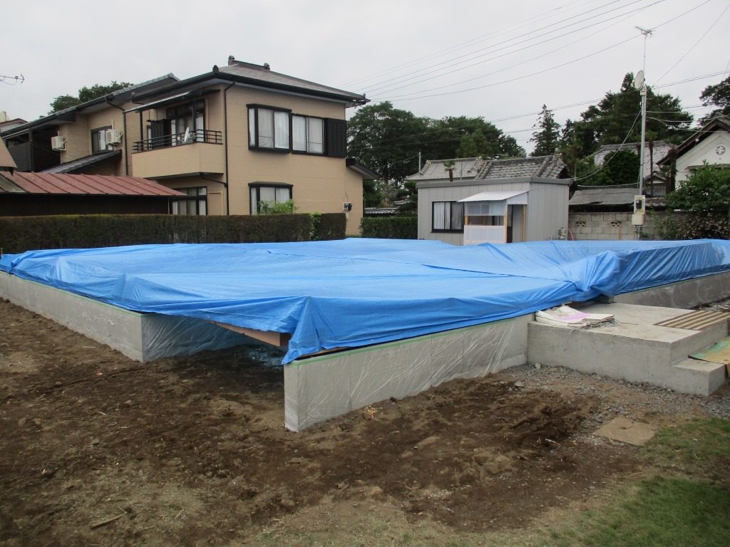 基礎が仕上がり養生をしていた I 様邸住宅新築工事