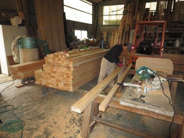 加工を進めさせて頂いているF様邸の化粧垂木材 木の木目を選定しなが……