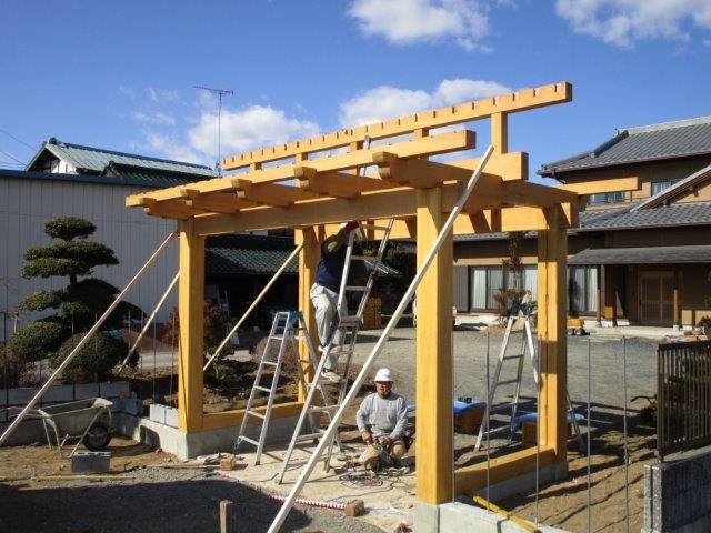 本日 市内で数年前に施工させて頂きましたO様宅で 門の棟上げをさせて頂きま……