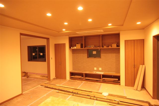 お引き渡しに向けて 仕上げ工事に入ってきたA様邸 TVボードの壁面に……